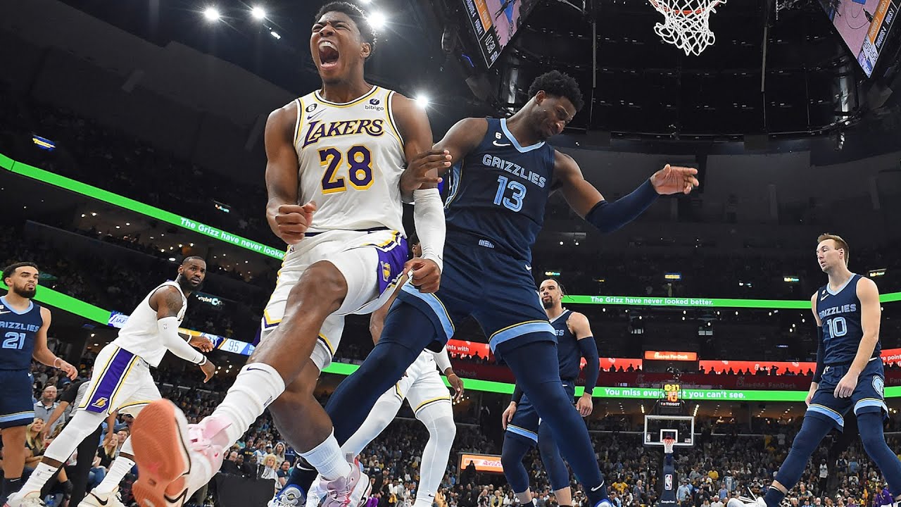八村選手の効果的な得点シーン、試合中の具体的なプレーやアシスト、ターンオーバーの状況、ロサンゼルス・レイカーズの勝利への貢献の様子の実況を聞き取ってみましょう。